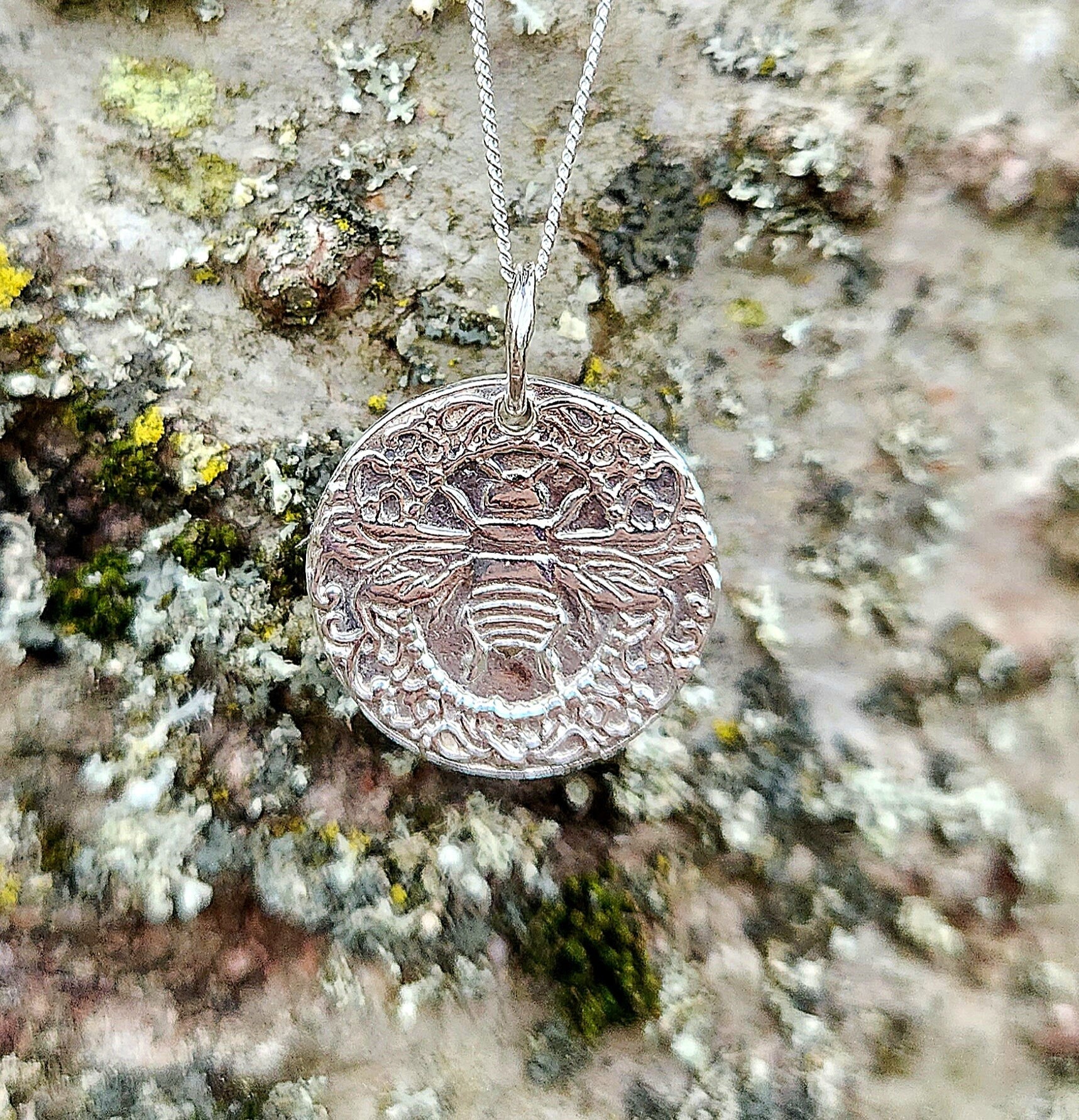 Elevate your style with our Bee Pendant, a masterpiece handmade from .999 fine silver and reminiscent of a charming wax seal.