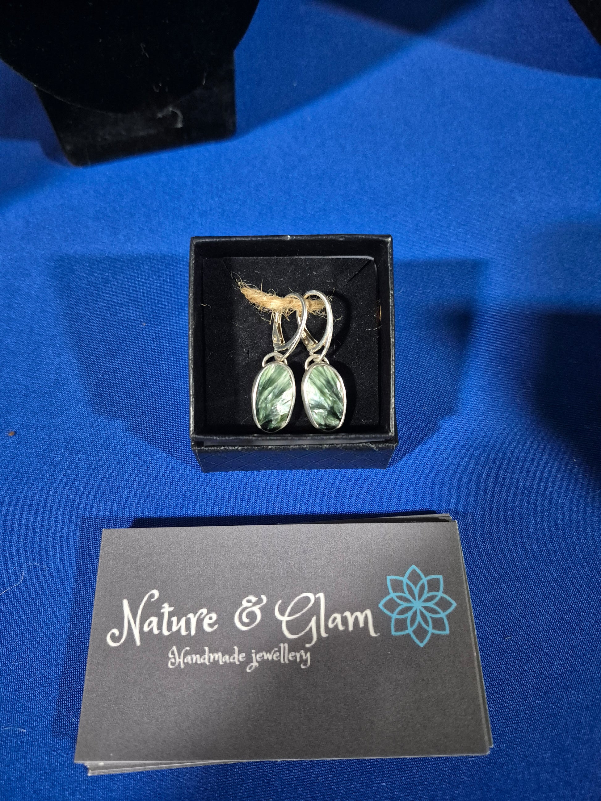 Handmade Sterling silver seraphenite dangle earrings